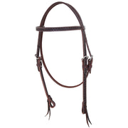 Testiera western realizzata in morbido cuoio di alta qualità e fibbie in acciaio inox che conferiscono resistenza e stabilità per tutta la durata di utilizzo.