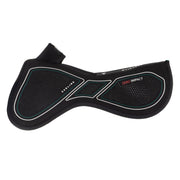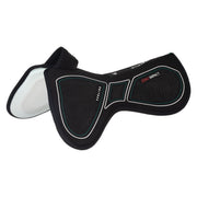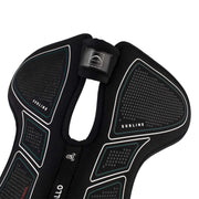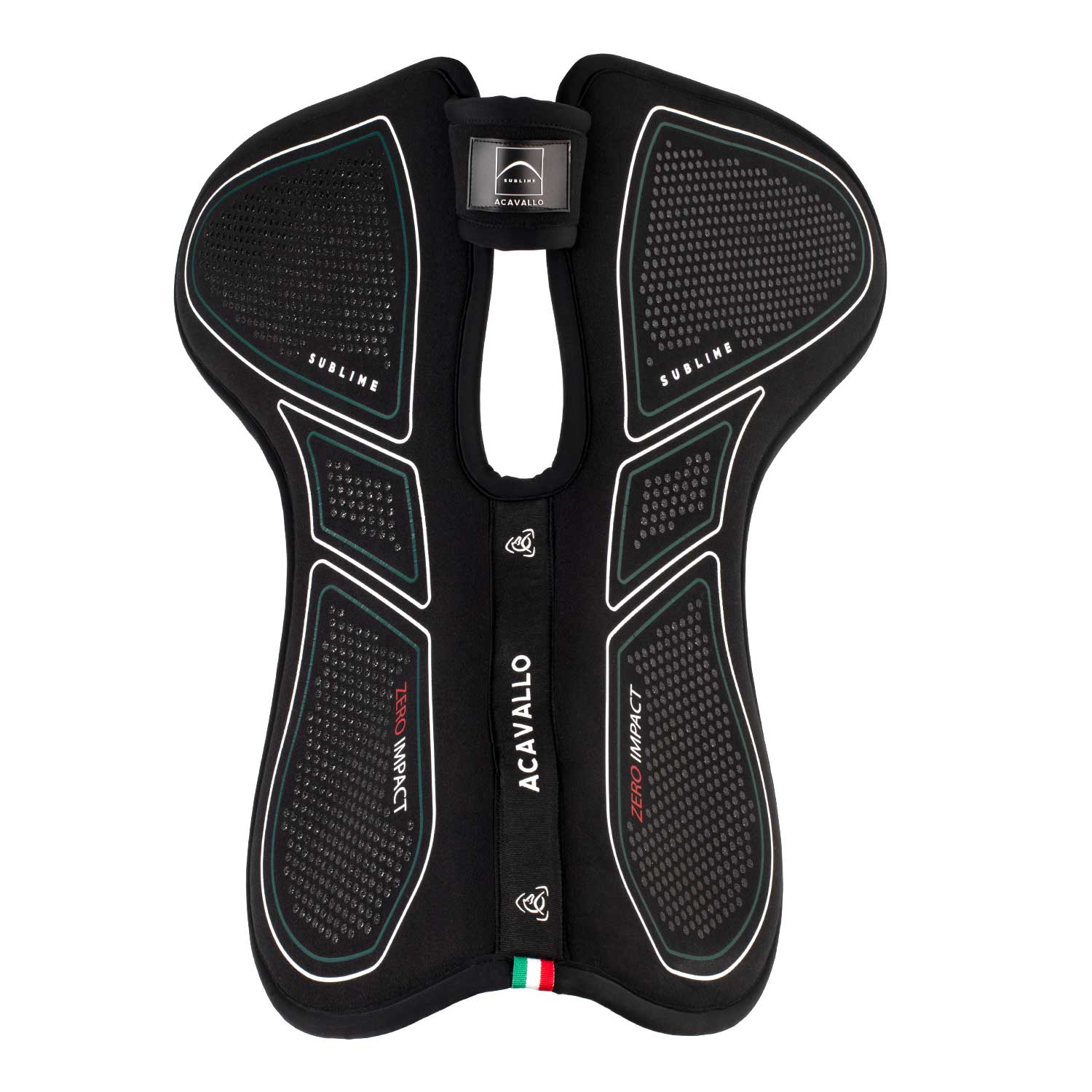 Il compensatore Zero Impact con rialzo anteriore e garrese libero della collezione Acavallo Sublime è progettato per offrire un supporto anatomico mirato e un migliore bilanciamento della sella che allevia al massimo la pressione sul garrese. La combinazione di materiali tecnici avanzati garantisce una protezione totale e un assorbimento degli urti efficace, rendendo il prodotto ideale per cavalli che necessitano di correzione nella posizione della sella. L'interno è realizzato in memory foam ad alta densità (90 kg/m³) e uno spessore di 16 mm, che assicura un’eccezionale distribuzione della pressione e ammortizzazione. La superficie è perforata con fori e strisce ergonomiche per migliorare la traspirabilità, mentre gli inserti in silicone impediscono lo scivolamento della sella durante l’attività.