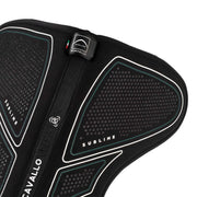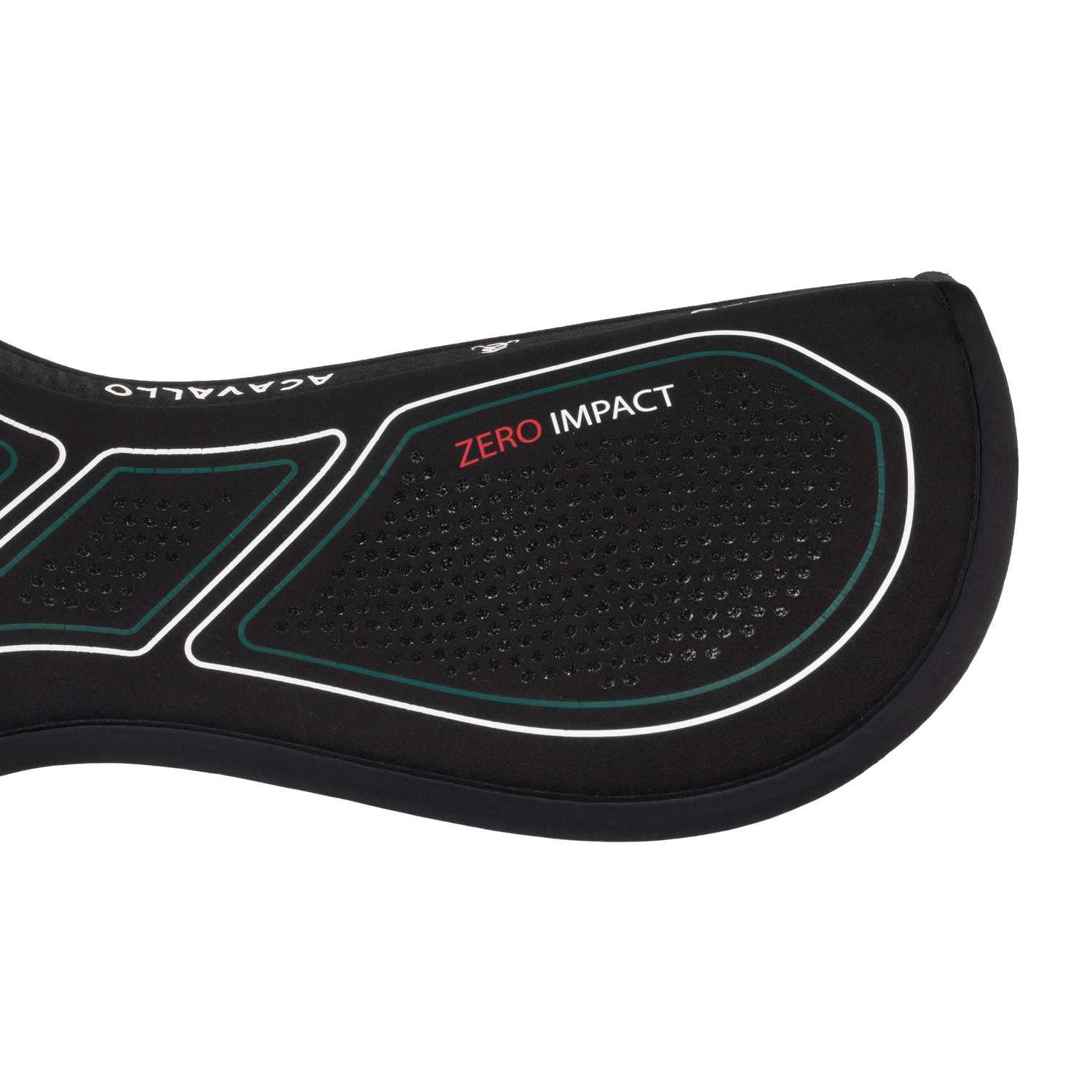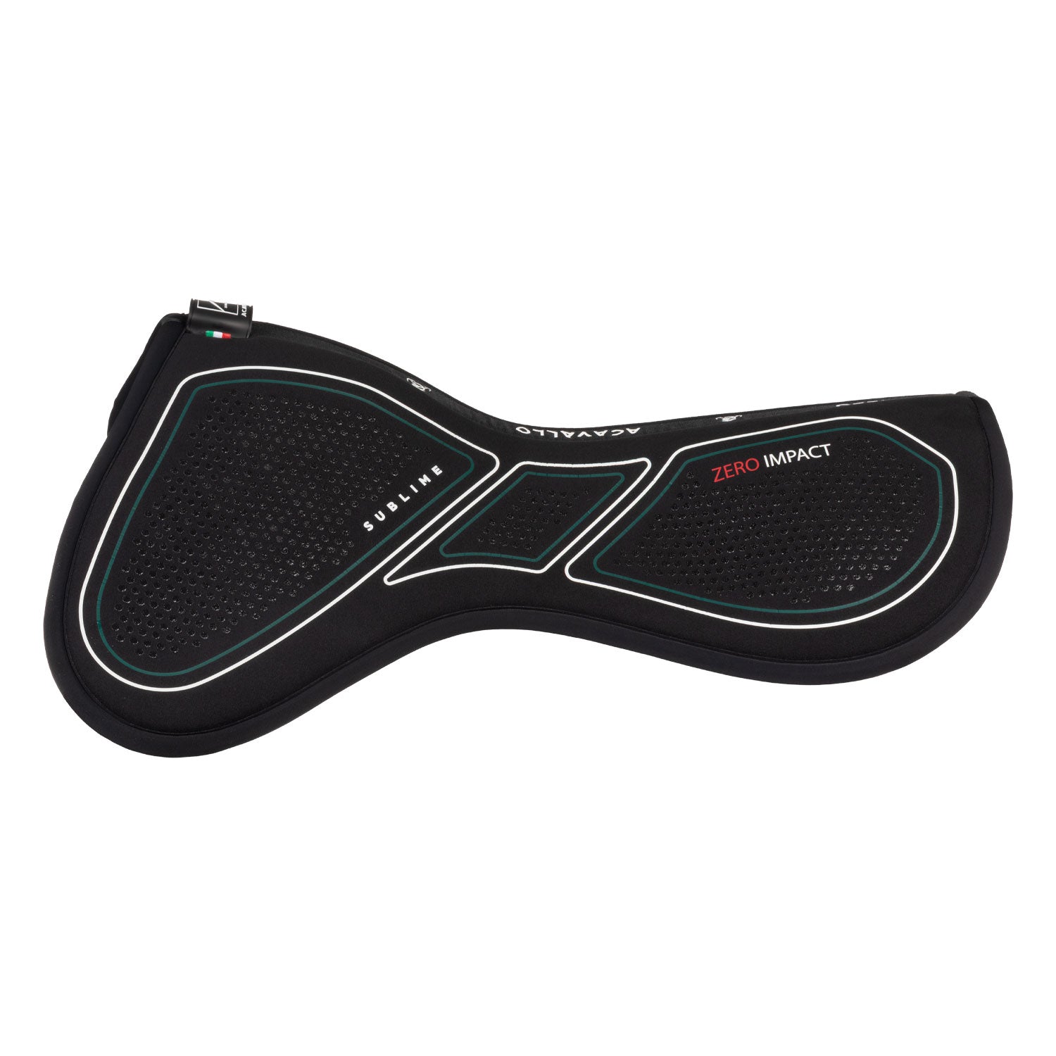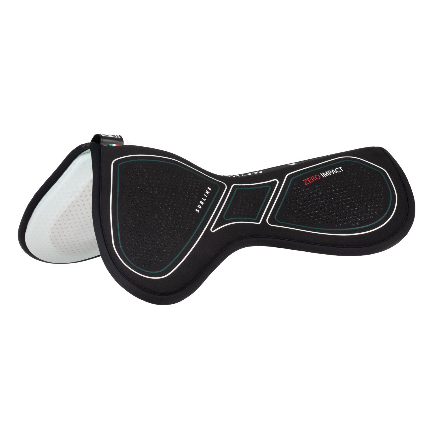 Il compensatore Zero Impact con rialzo anteriore della collezione Acavallo Sublime è progettato per offrire un supporto anatomico mirato e un migliore bilanciamento della sella che allevia la pressione sul garrese. La combinazione di materiali tecnici avanzati garantisce una protezione totale e un assorbimento degli urti efficace, rendendo il prodotto ideale per cavalli che necessitano di correzione nella posizione della sella. L'interno pad è realizzato in memory foam ad alta densità (90 kg/m³) e uno spessore di 16 mm, che assicura un’eccezionale distribuzione della pressione e ammortizzazione. La superficie è perforata con fori e strisce ergonomiche per migliorare la traspirabilità, mentre gli inserti in silicone impediscono lo scivolamento della sella durante l’attività.