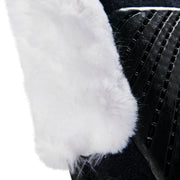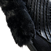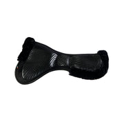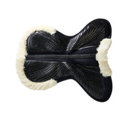 Il rivestimento esterno in camoscio e montone sintetico cut-out del pad avvolge la sella, evitando qualsiasi movimento indesiderato in avanti, indietro o lateralmente. Questa caratteristica assicura una sella stabile e bilanciata durante l'attività equestre.