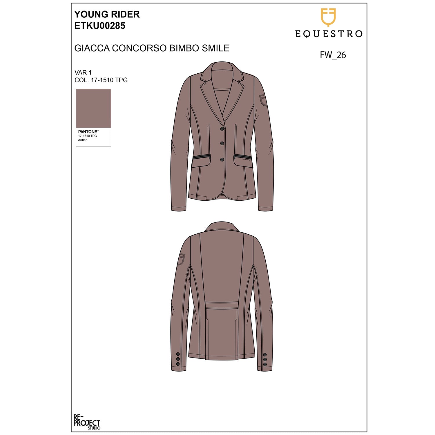 Giacca bambini slim fit modello Girasol realizzata in tessuto tecnico traspirante, morbido ed elastico, per una maggiore libertà di movimento, pur mantenendo l'eleganza tipica dei prodotti Equestro.