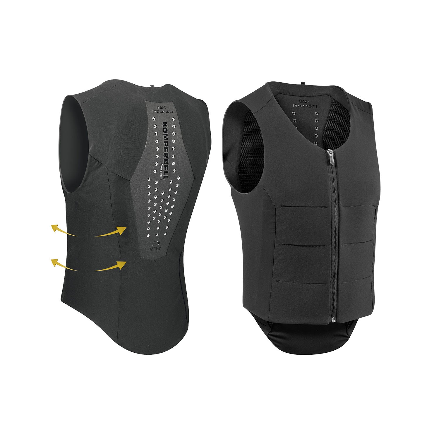 Il gilet offre una protezione quasi completa a 360° con zone di protezione nella parte anteriore e nelle costole, e si adatta al corpo modellandosi grazie al sistema di protezione multilayer a strati.