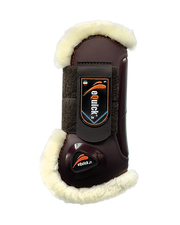 Open front tendon boots, reinforced TPU shell with exclusive treatment that makes them looks like leather, equipped with two elastic straps and double velcro.