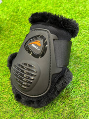 Fetlock boots with reinforced TPU shell with exclusive treatment that makes them looks like leather, equipped with double velcro.