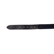 Cintura in morbido cuoio e tessuto elastico, impreziosita dalla fibbia a logo in acciaio inox.