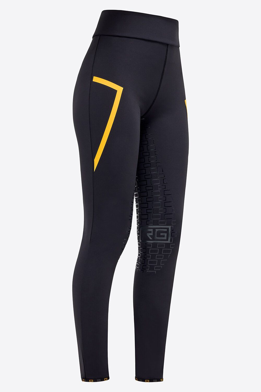 I leggins da equitazione RG a vita alta sono realizzati in tessuto jersey bi-stretch con caratteristiche fast-drying e anti-UV. Dal design innovativo e confortevole, vestono comodamente senza alcuna costrizione.Questo modello è caratterizzato da un full-grip tono su tono che garantisce una completa aderenza alla sella senza ostacolare il movimento del rider. Le pratiche tasche con zip invisibile inserite ad altezza coscia sono perfette per contenere il tuo iphone durante le passeggiate a cavallo. Disponibile in vari colori.