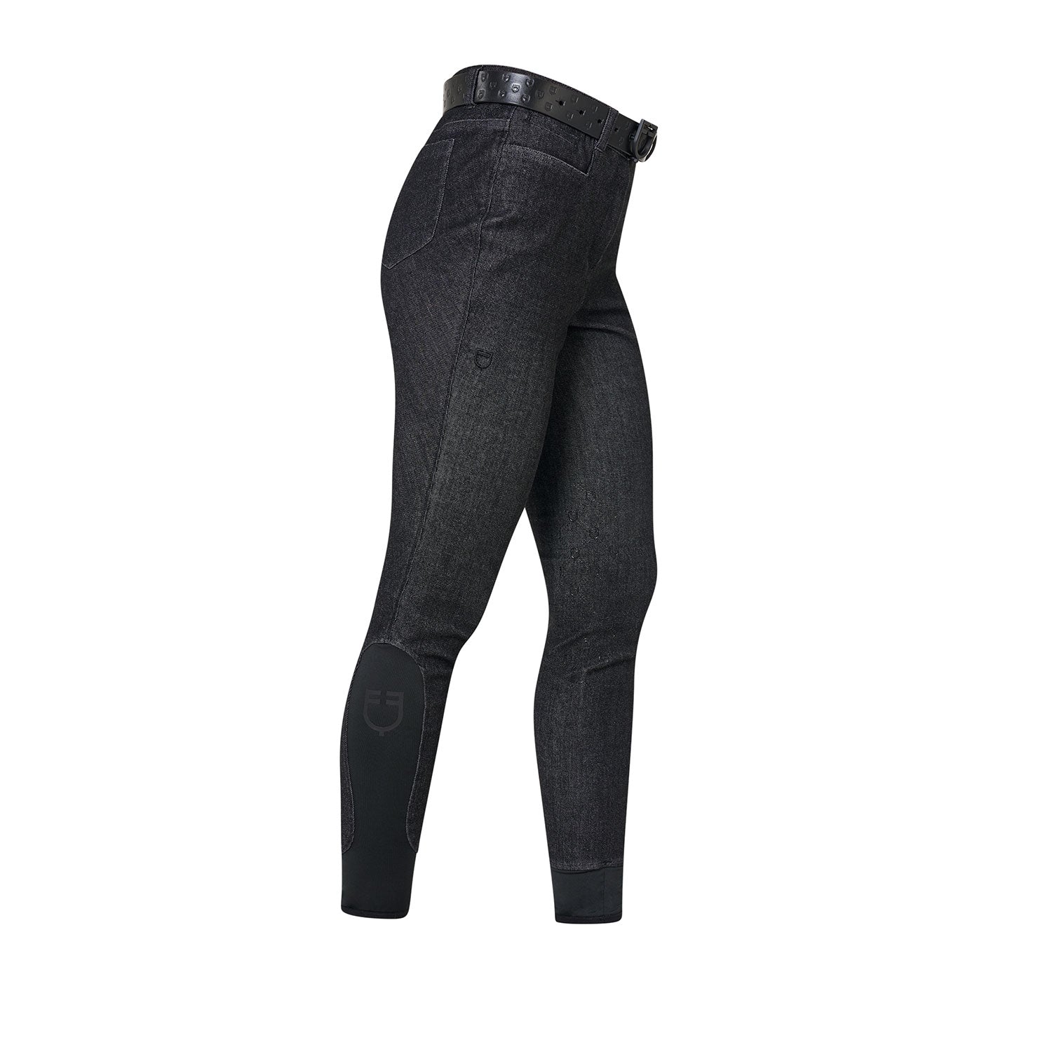 Il capo è caratterizzato da grip siliconato con motivo monogram, applicato per garantire una buona stabilità e un’aderenza efficace alla sella, senza compromettere la naturale elasticità del tessuto. Il design è completato da due tasche posteriori, funzionali e dal gusto classico, che valorizzano l’estetica ispirata al denim.
