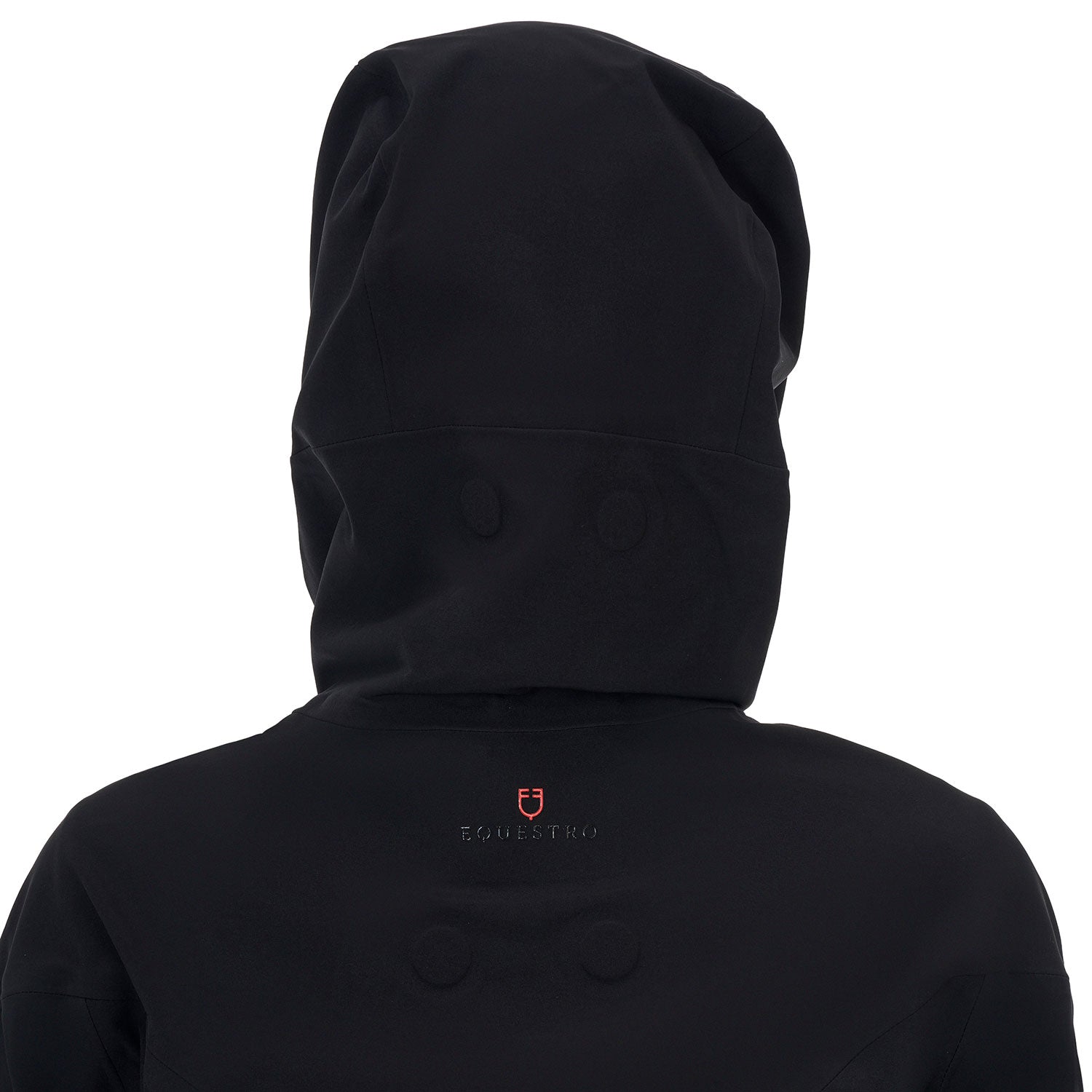 L'iconico logo Equestro Ridertechnology, stampato sulla parte sinistra del petto nel suo caratteristico rosso acceso, e il logo Equestro realizzato in tessuto traforato applicato sulla parte posteriore del guscio, ne sottolineano lo stile inconfondibile.
