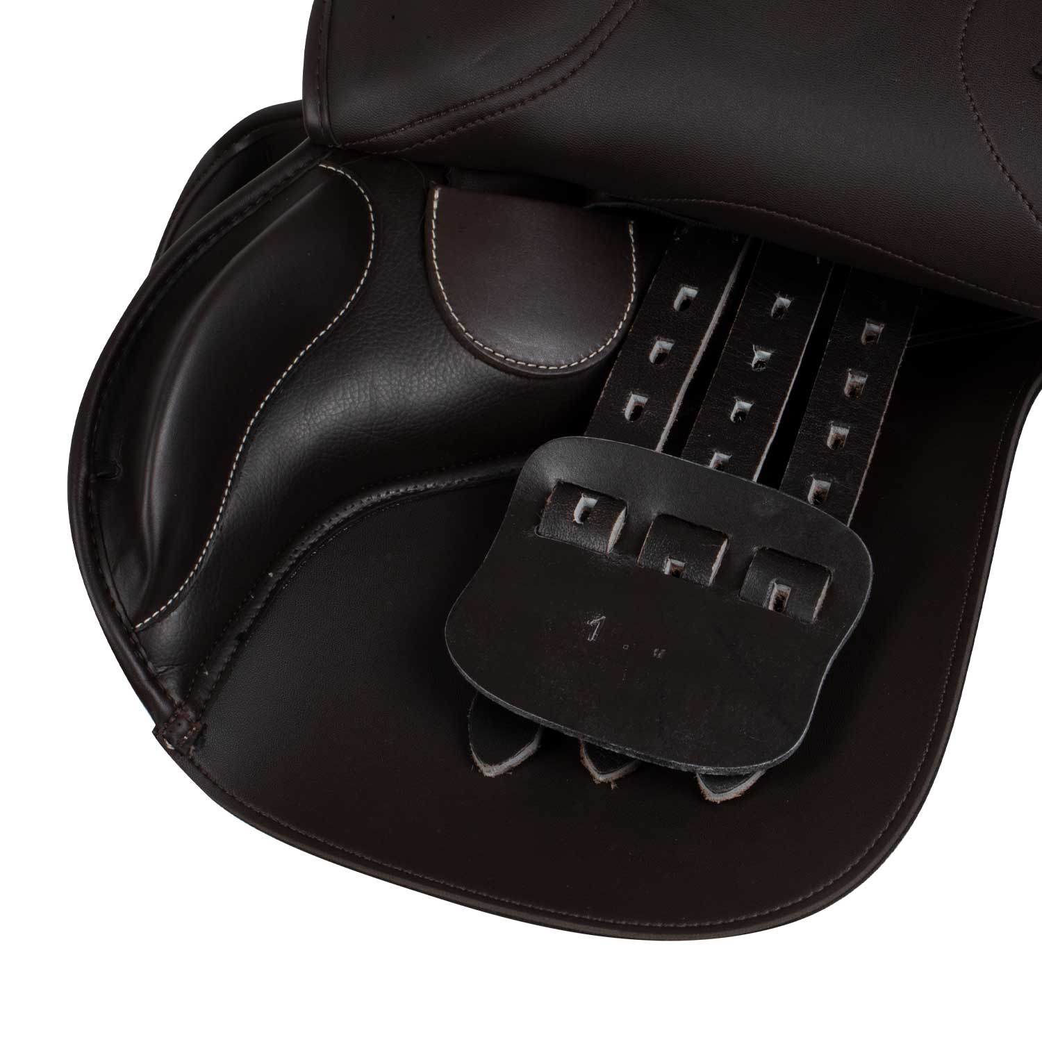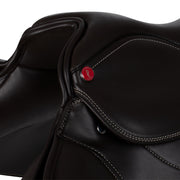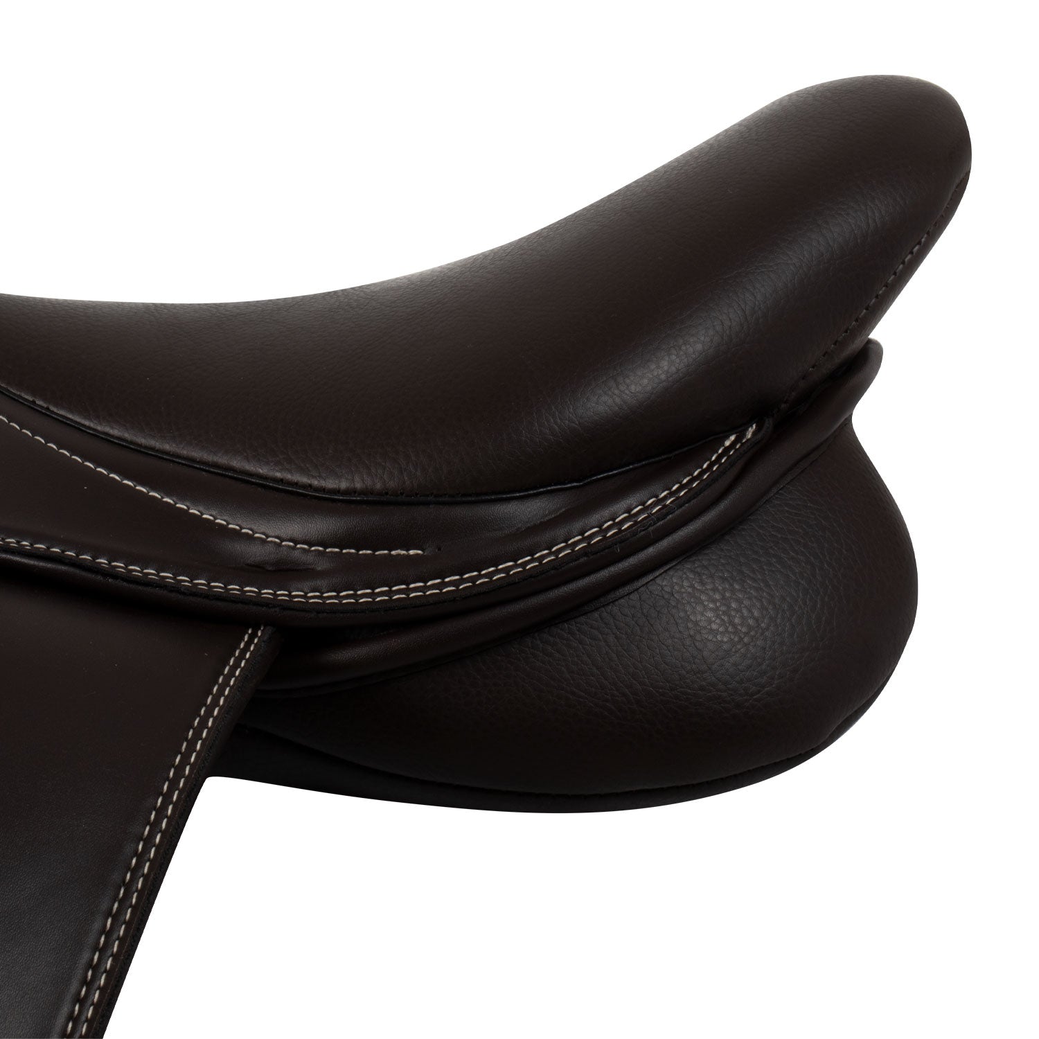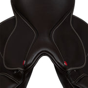 Sella inglese da salto in pelle PU, con doppia imbottitura e quartieri in eco-pelle liscia.