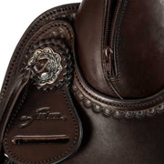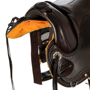 Sella senza arcione in stile western versatile e leggera (solo 5 kg) unica per comfort e flessibilità che garantisce la massima libertà di movimento e la possibilità di vestire anche i cavalli più difficili grazie al fork in legno intercambiabile disponibile in diverse misure di garrese.