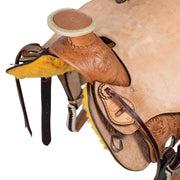 La sella è rifinita nei dettagli con lavorazione floreale.