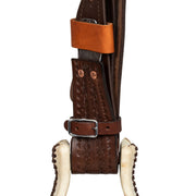 Sella western Pool's Genuine modello reining Butterfly. Cuoio harness con riporti in rawhide.