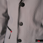 Il design minimalista con chiusura a tre bottoni e tasche a soffietto aggiungono un tocco di eleganza.