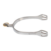 Speroni inglesi con rotella in ottone dal design innovativo caratterizzato da doppio occhiello, di cui uno svasato, per consentire allo sperone un’ottima stabilità.