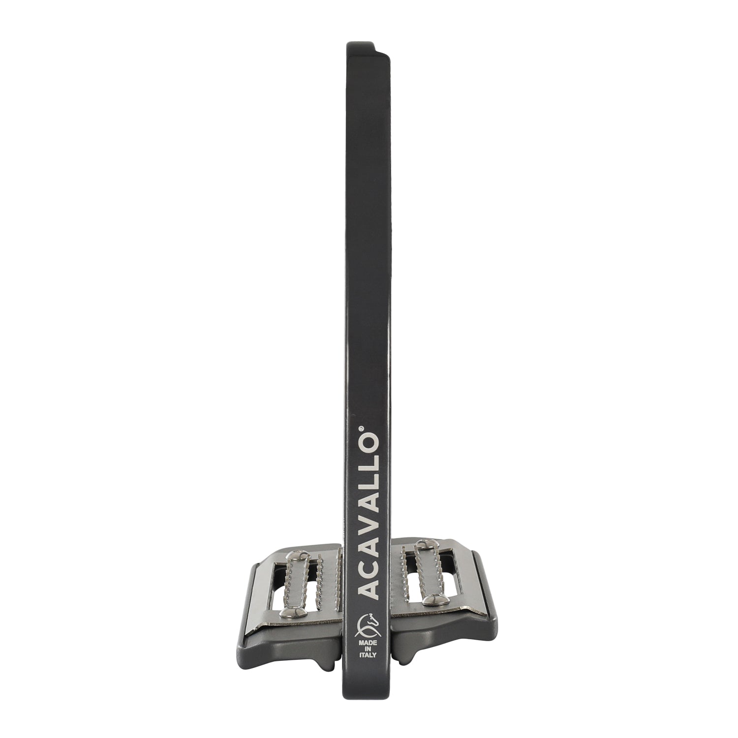 La parte superiore della panca è realizzata in acciaio inossidabile, con lunghi fori orizzontali. L'inclinazione della panca di 5° aiuta i cavalieri ad assumere la corretta postura, alleviando le tensioni di caviglie, polpacci, ginocchia e fianchi.