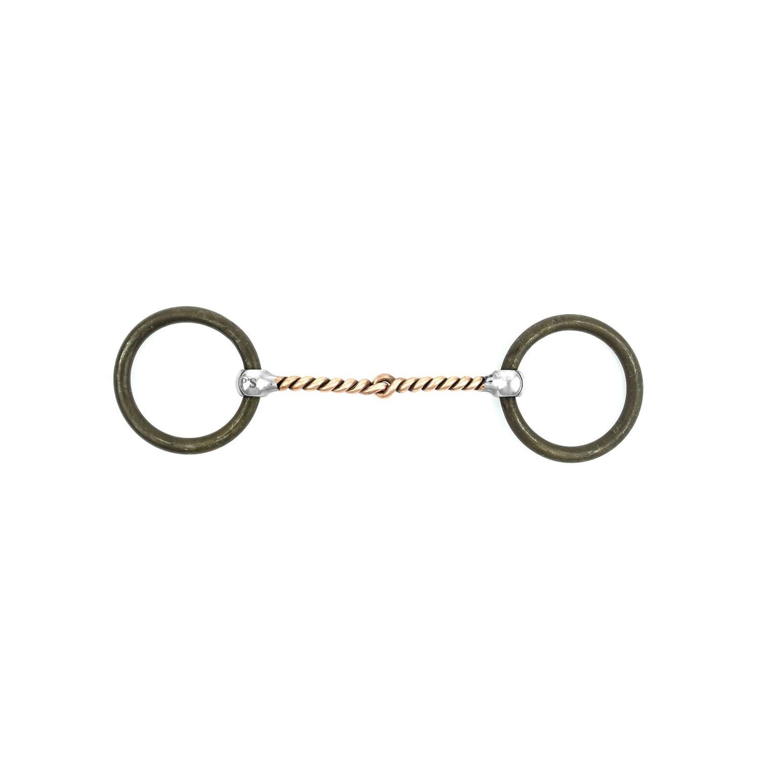 Filetto western ad anelli, imboccatura con torciglione curvo in rame