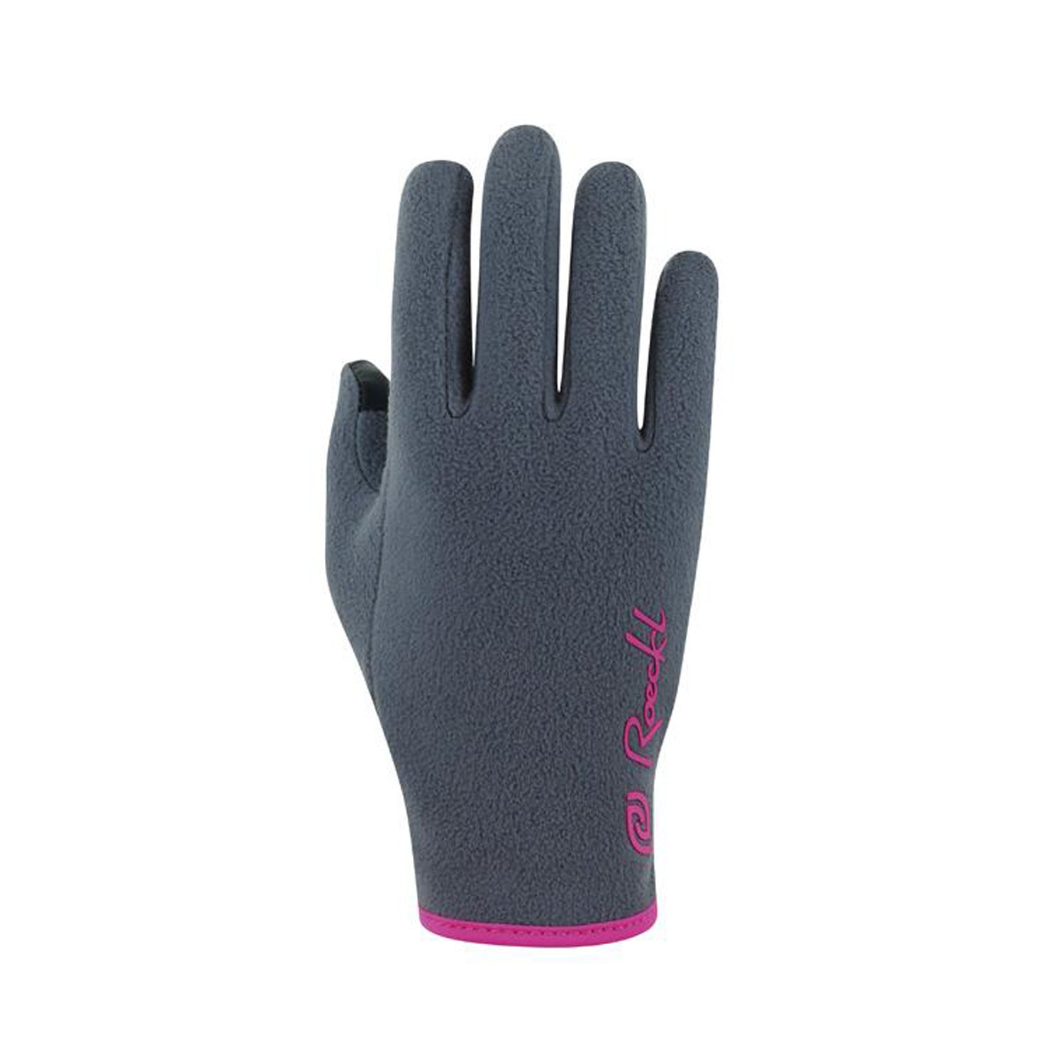 Conclusione: un guanto tuttofare tanto elegante quanto funzionale, un'ottima scelta non solo per andare alla stalla, ma anche per fare una passeggiata nella campagna innevata senza cavallo. Disponibile in vinaccia con bordo rosa o in grigio con bordo rosa, entrambi con il logo Roeckl Sports in corsivo femminile lungo il bordo della mano.