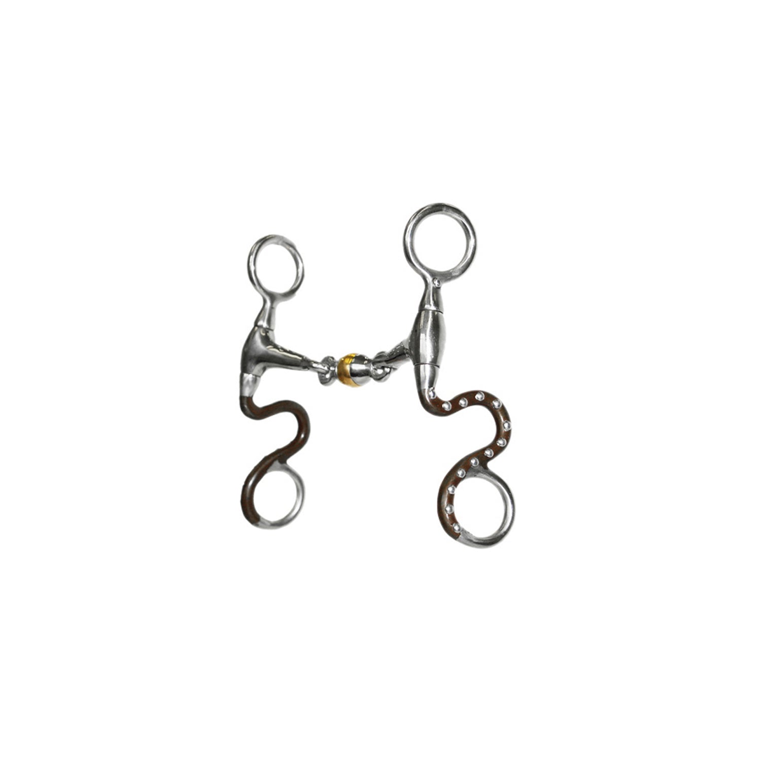 Morso western POOL'S in ferro brunito, imboccatura con gioco-lingua in rame, aste corte decorate