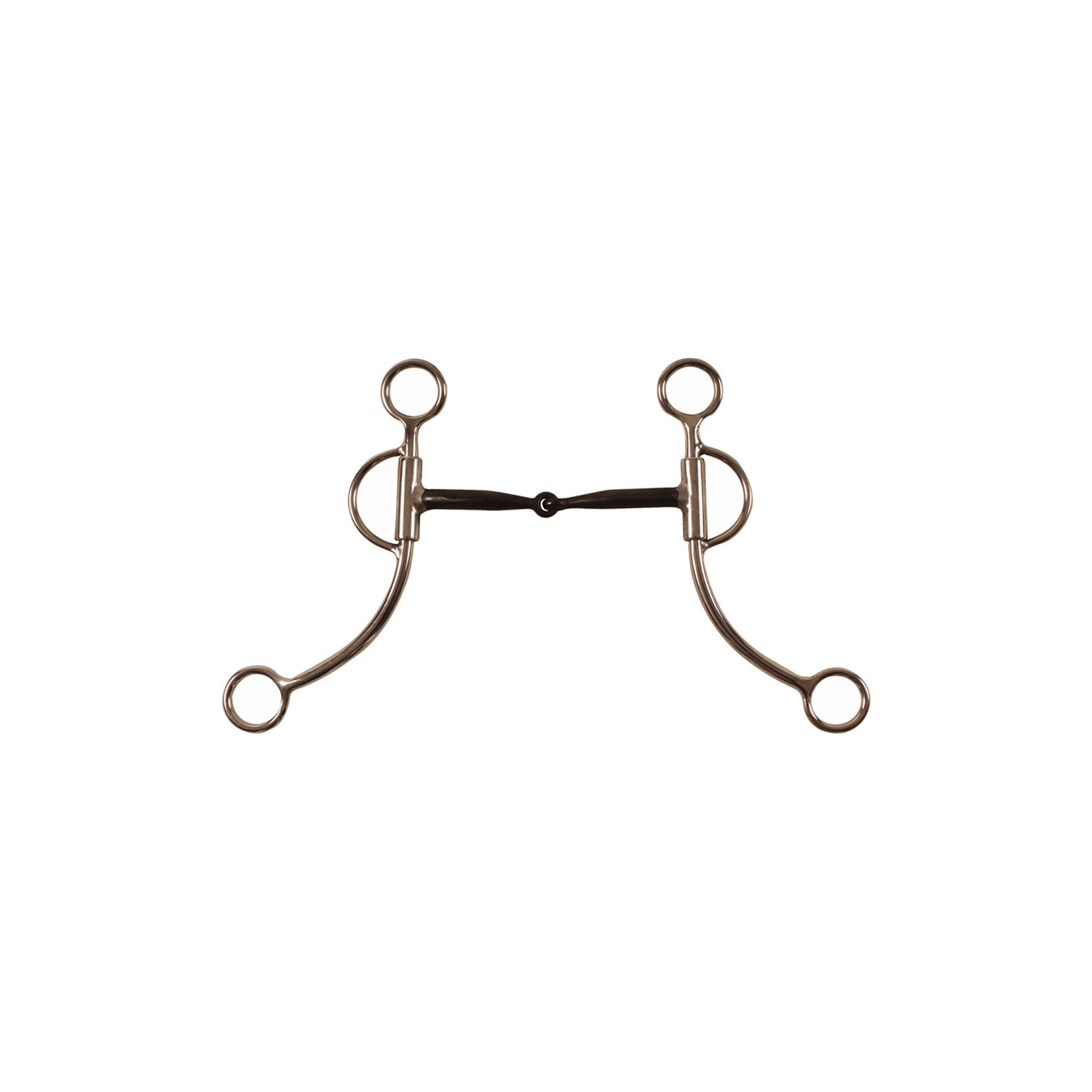 Morso western inox snodato, imboccatura in ferro nero e inserti in rame, aste lunghe