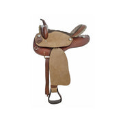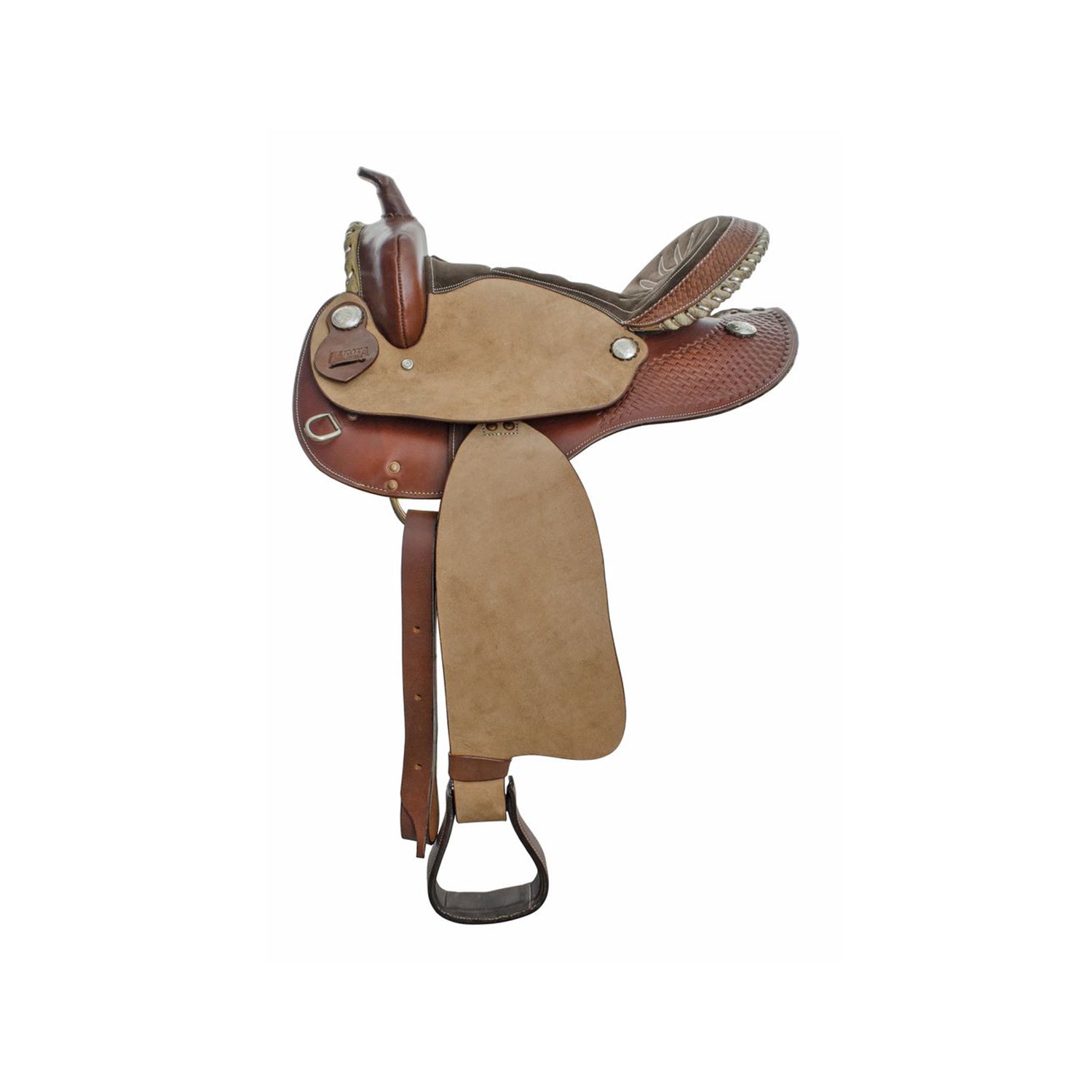 Sella western Lakota modello barrel, seggio in cuoio scamosciato, completa di sottopancia