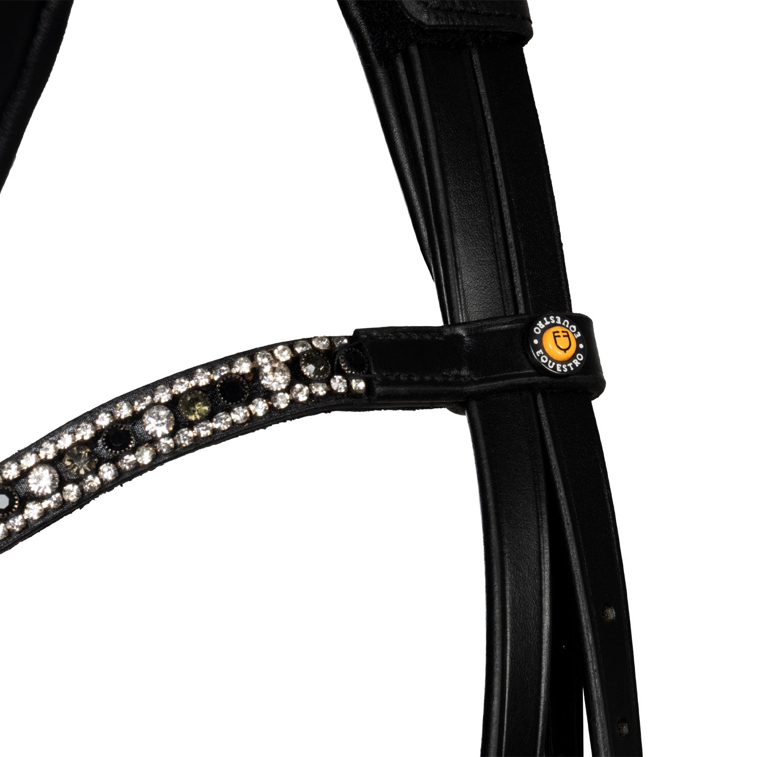 Frontalino e capezzina imbottiti e frontalino decorato con strass e placchetta logata Equestro.