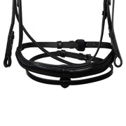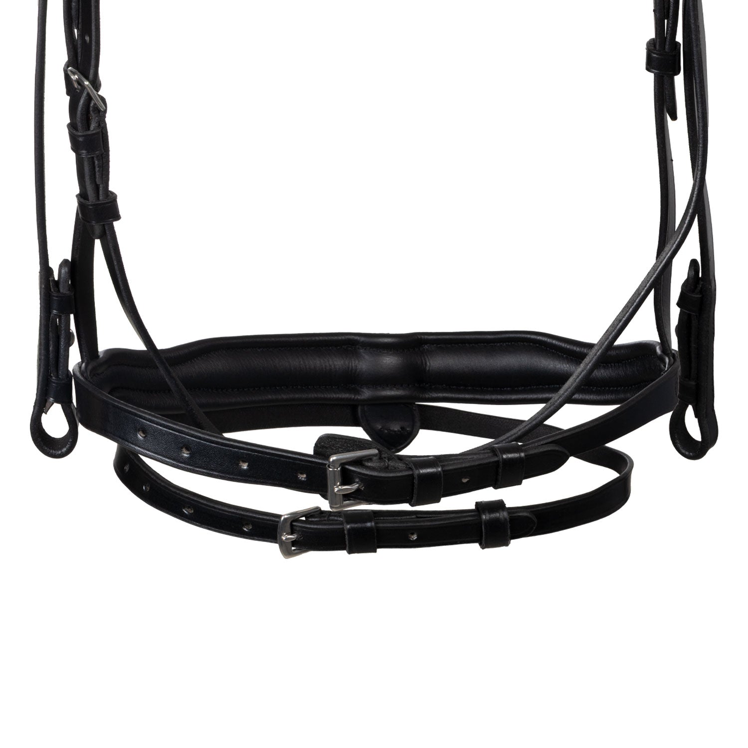 Testiera inglese in morbido cuoio di alta qualità, con fibbie in acciaio inox che conferiscono sicurezza, stabilità e resistenza nel tempo.