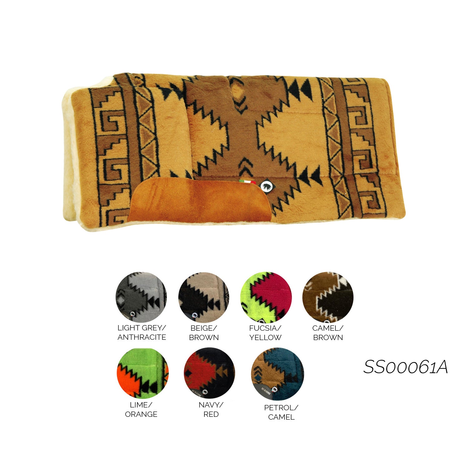 Sottosella western imbottito, tessuto pile e pelliccietta in pura lana, rinforzi in pelle, garrese aperto e rialzato