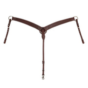 Pettorale western in cuoio di alta qualità e liscio, realizzato con fibbie in acciaio inox per una massima durabilità e resistenza nel tempo. Il pettorale è inoltre dotato di riscontri laterali e aggancio per il sottopancia.