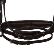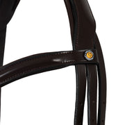 Testiera inglese realizzata con pregiato cuoio morbido, caratterizzata da fibbie in acciaio inossidabile che assicurano durabilità e stabilità nel tempo.