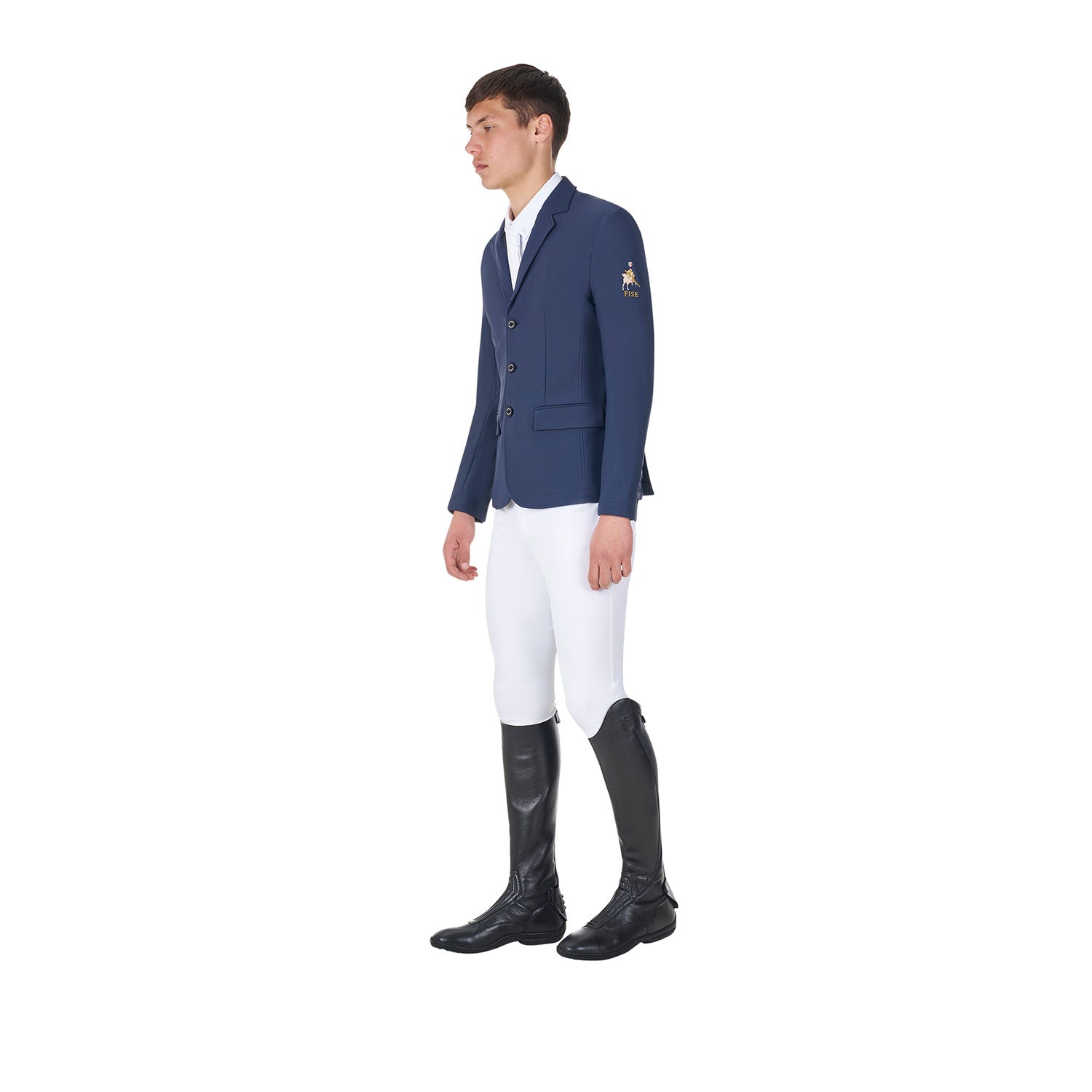 Giacca da concorso uomo slim fit Equestro X FISE realizzata in tessuto tecnico, morbido ed elastico, per una maggiore libertà di movimento, pur mantenendo l'eleganza tipica dei prodotti Equestro.