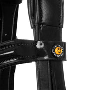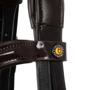 Testiera inglese realizzata con pregiato cuoio morbido, caratterizzata da fibbie in acciaio inossidabile che assicurano durabilità e stabilità nel tempo.