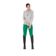Felpa con cappuccio da donna in morbido cotone, pensata per chi cerca comfort e stile in ogni momento. L'interno garzato regala una piacevole sensazione di morbidezza, favorendo la traspirazione e mantenendo la pelle fresca anche durante le attività più intense. Le tasche laterali con zip uniscono praticità e sicurezza, ideali per portare con te gli oggetti essenziali. Polsini e fascia a costine offrono una vestibilità ottimale, completando il look con un tocco moderno e sportivo. Il dettaglio della patch con Equestro in spugna sul petto aggiunge personalità e carattere, trasformando un capo classico in un elemento distintivo per il tuo guardaroba.