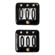 Porta numeri da gara realizzato in cuoio lucido di alta qualità e plastica trasparente, decorato con raffinati cristalli incastonati. Pensato per portare numeri fino a tre cifre.
