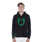 Felpa uomo realizzata in morbido cotone con pratica zip frontale antivento e cappuccio regolabile, per offrire al cavaliere un'impareggiabile comfort.