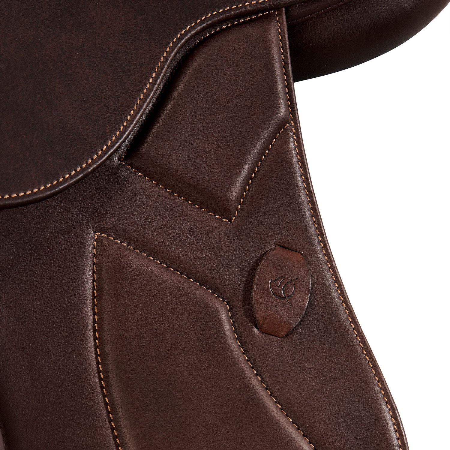 La sella da salto Modigliani è realizzata in cuoio doppiato di vitello pieno fiore di alta qualità.