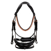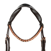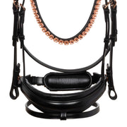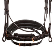 Le fibbie in acciaio inox color rose gold garantiscono la durata nel tempo e una chiusura sicura. La testiera Ninfea è una combinazione di stile, funzionalità e qualità artigianale che soddisferà anche i cavalieri più esigenti.