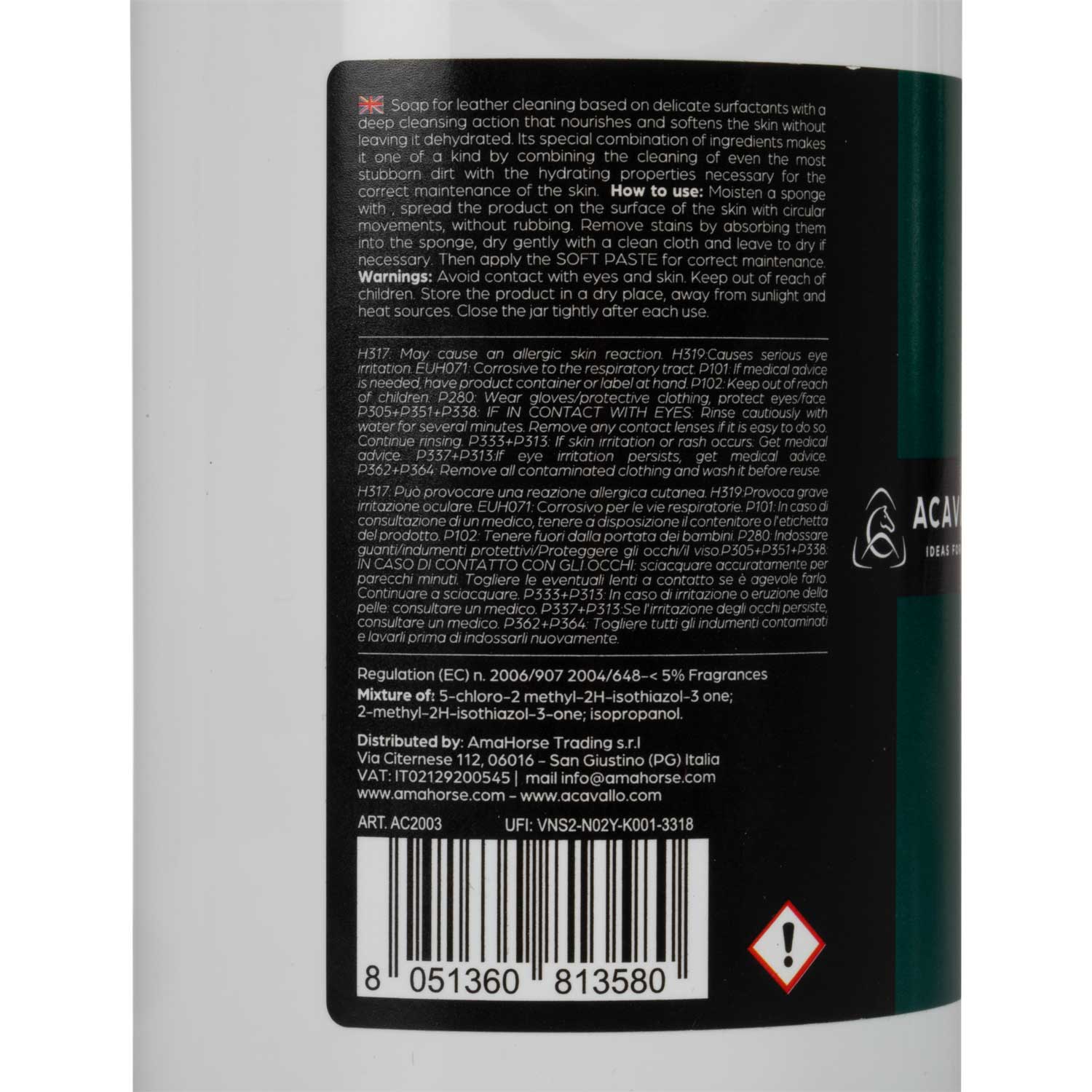 Acavallo Soft Combi è un detergente delicato per la pulizia di selle e finimenti a base di tensioattivi delicati con un'azione di pulizia profonda, nutrendo e rendendo il cuoio morbido nello stesso tempo, senza lasciarla disidratare. La sua combinazione speciale di ingredienti lo rende unico nel suo genere abbinando la pulizia di sporco anche il più ostinato con le proprietà idratanti necessarie al corretto mantenimento della pelle.