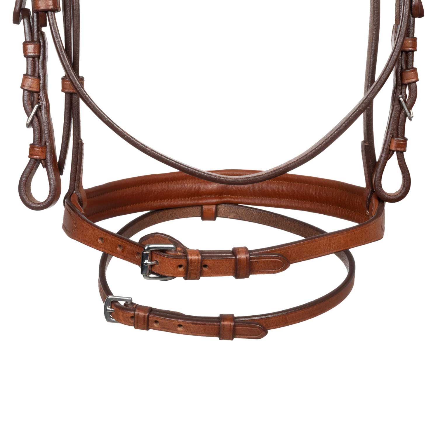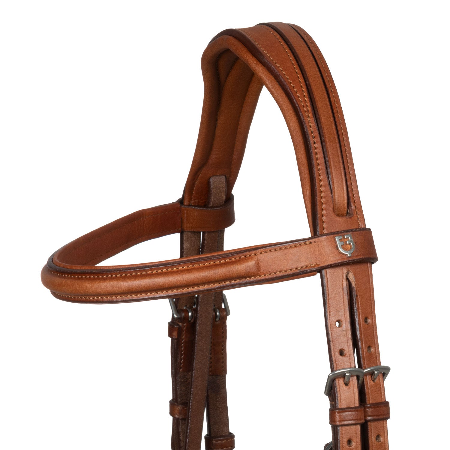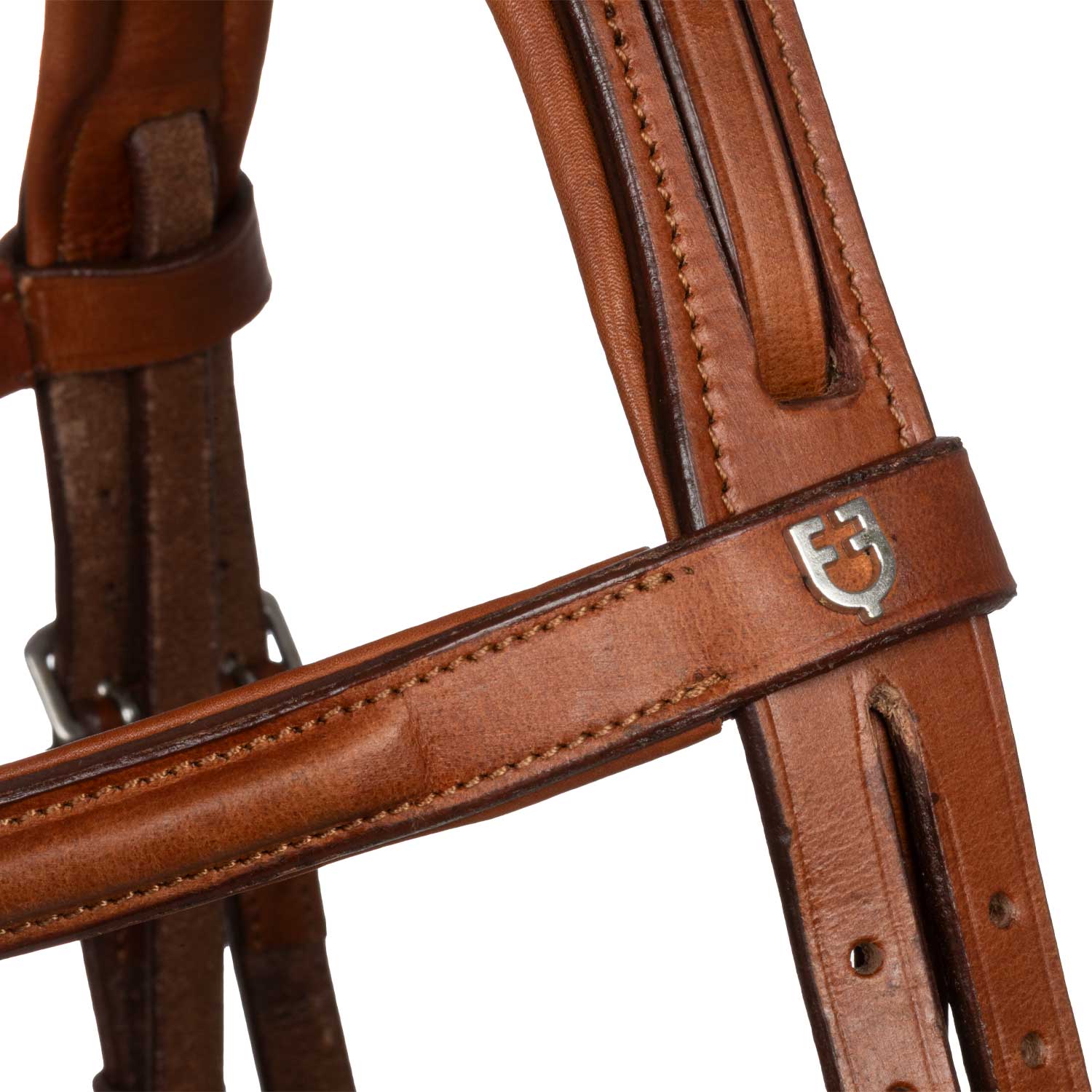 Testiera inglese in morbido cuoio di alta qualità, con fibbie in acciaio inox per garantire sicurezza, stabilità e resistenza nel tempo.