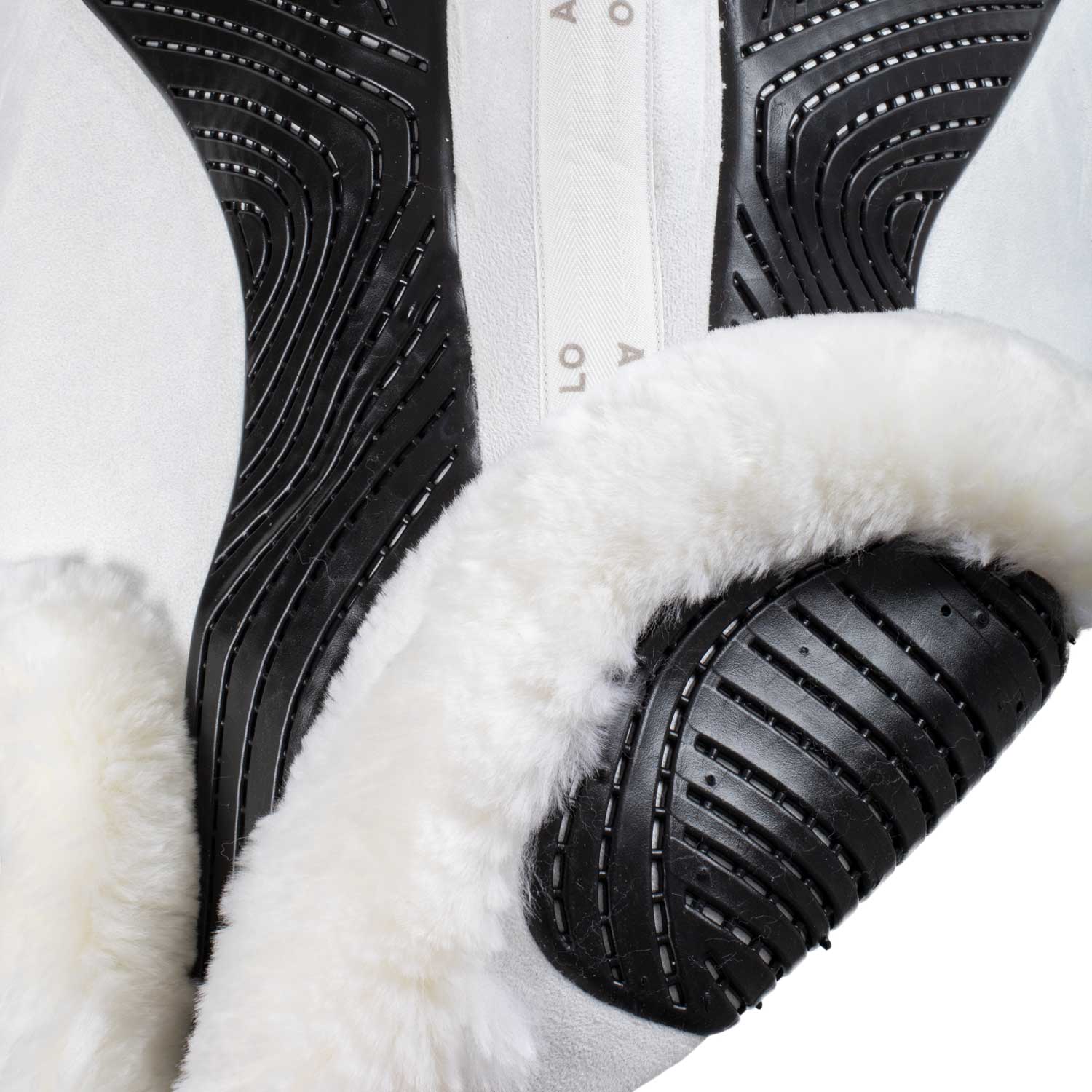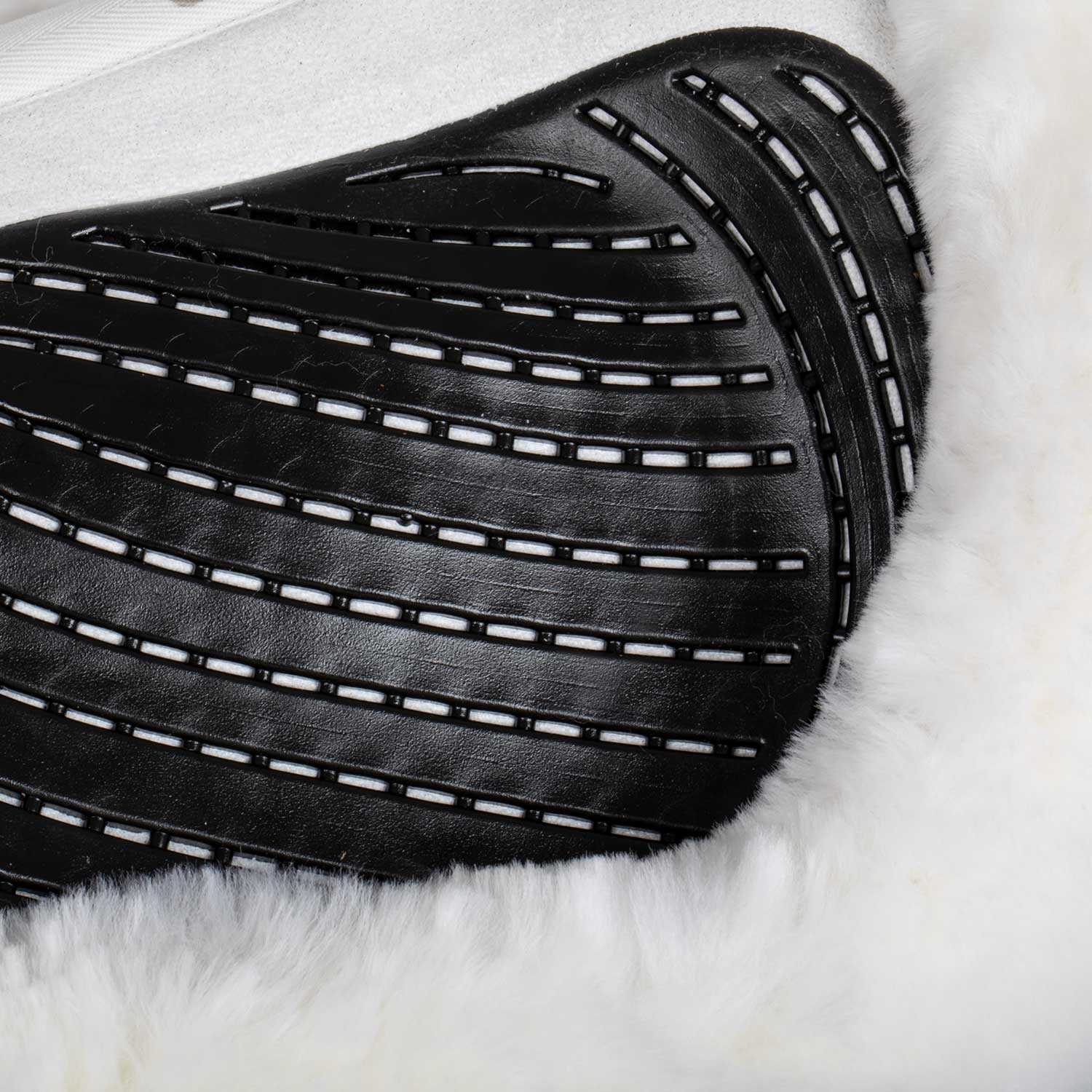 Il bordo del sottosella è rivestito in montone sintetico, un materiale noto per la sua morbidezza e delicatezza sulla pelle del cavallo, il quale protegge da sfregamenti, abrasioni e vesciche, assicurando il massimo comfort.