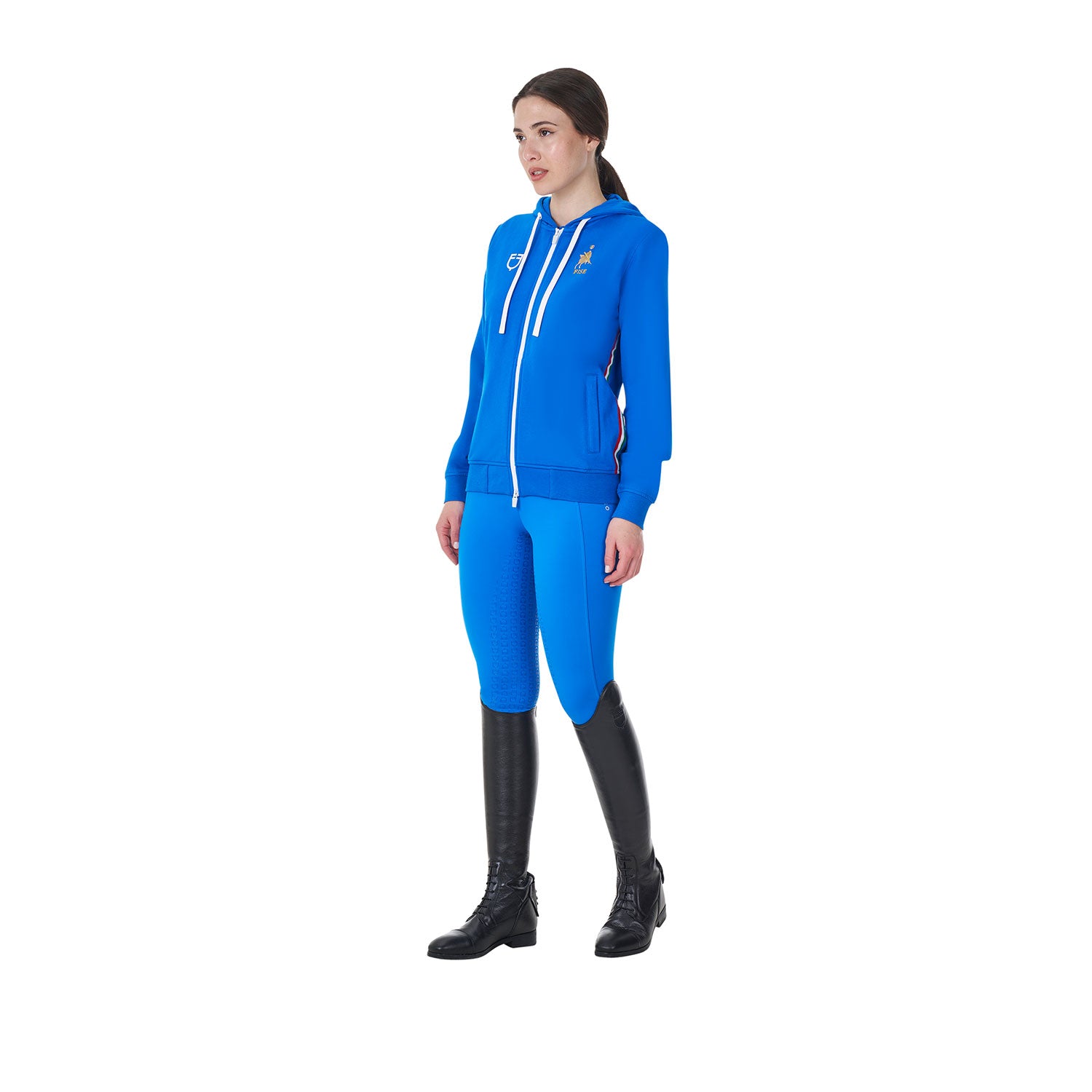 Felpa donna Equestro X FISE realizzata in morbido cotone con pratica zip frontale antivento e cappuccio regolabile, per offrire al cavaliere un'impareggiabile comfort.