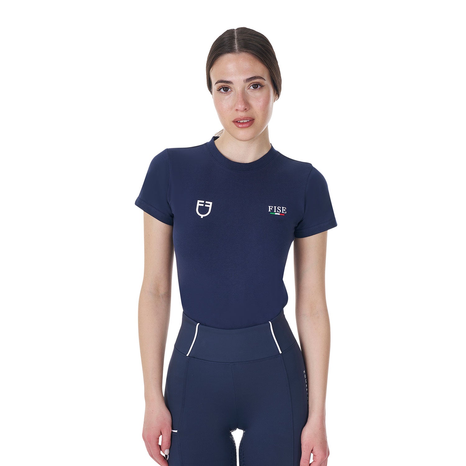 T-shirt donna slim fit Equestro X FISE in cotone a mezza manica super performante e pratica, perfetta per la stagione estiva.